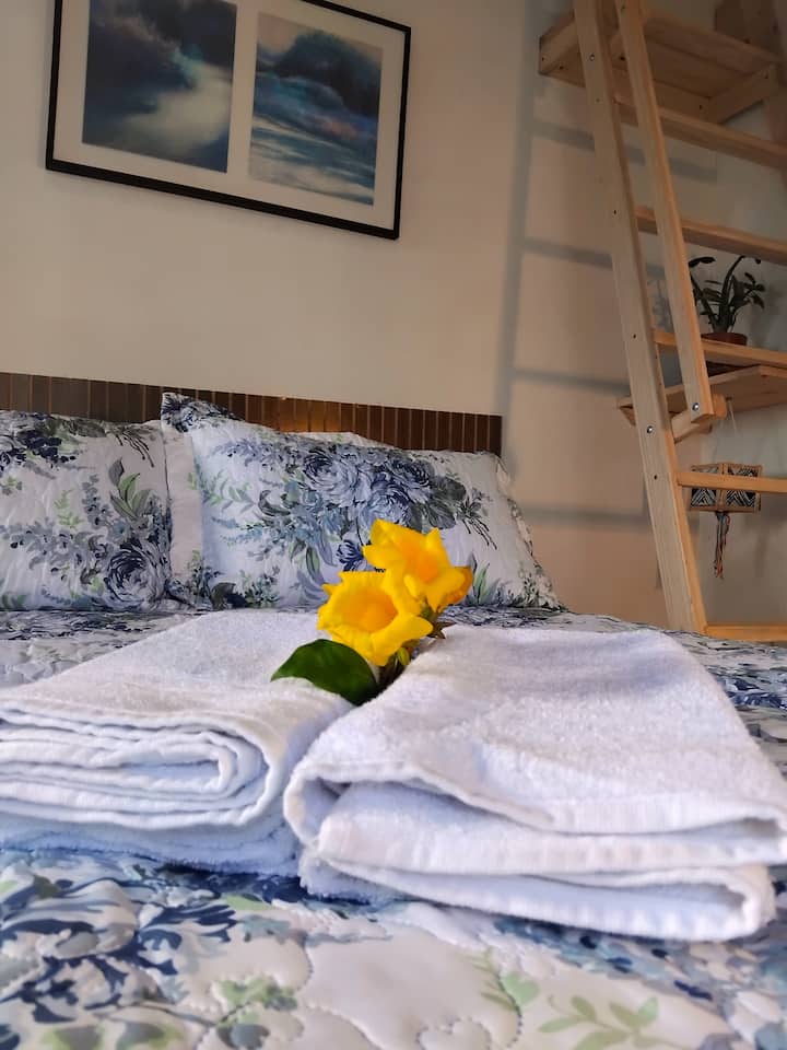 Mimi na mume wangu tulihamia Paraty tukitafuta mradi mpya wa maisha wenye afya mbali na miji mikuu. Mji huu wa kupendeza umetuvutia kwa utofauti wake wa kitamaduni na asili. Hapa watoto wetu 2 wadogo walizaliwa na tulijenga, kwa juhudi nyingi, nyumba yetu kwa mtazamo mzuri unaoangalia ghuba ya Paraty na tulikuwa na wazo la kujenga vyumba vyetu vya Eco "Kati ya Anga na Bahari" ili kupokea marafiki na kushiriki uzoefu huu.