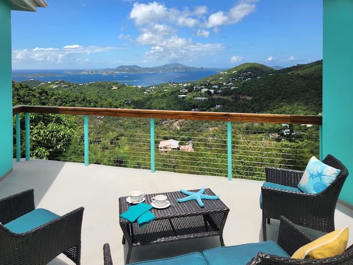 DreamView On The Hill ni nyumba pana inayoelekea baharini inayotumia umeme wa paneli za jua zinazojitegemea kwenye nyumba nzuri ya ekari 1 iliyojitenga bila wageni wengine. Vila hii inajumuisha ngazi nzima ya juu ya kilima - inayotoa vitanda 3 (vyote ni vya ukubwa wa kingi)/ mabafu 2 na maegesho yaliyofungwa, njia za kutembea zenye mwanga, ukumbi uliofunikwa, na sitaha nyingi zinazohakikisha mazingira mazuri. Ndani kuna dari za Kanisa Kuu, feni za dari, AC, jiko kamili, na eneo la kulia chakula/la kuishi lenye mandhari ya kuvutia kutoka kila chumba. Maili 3 kutoka Cruz Bay