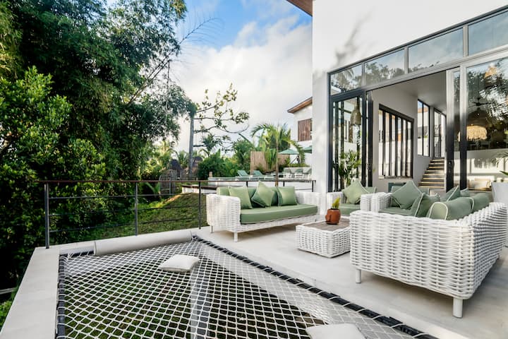 Karibu Villa Leove huko Peliatan, eneo lenye utulivu la vyumba 5 lililowekwa katikati ya uzuri wa asili wa Ubud.