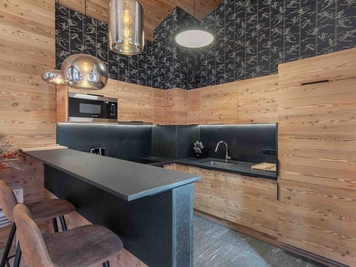 - Fungua jiko lililo na vifaa: friji/friji, mashine ya kuosha vyombo, oveni, mikrowevu, sahani ya kuingiza iliyo na kofia jumuishi, kukausha mashine ya kuosha, Nespresso, toaster, birika, huduma ya raclette/ pierrade, huduma ya fondue