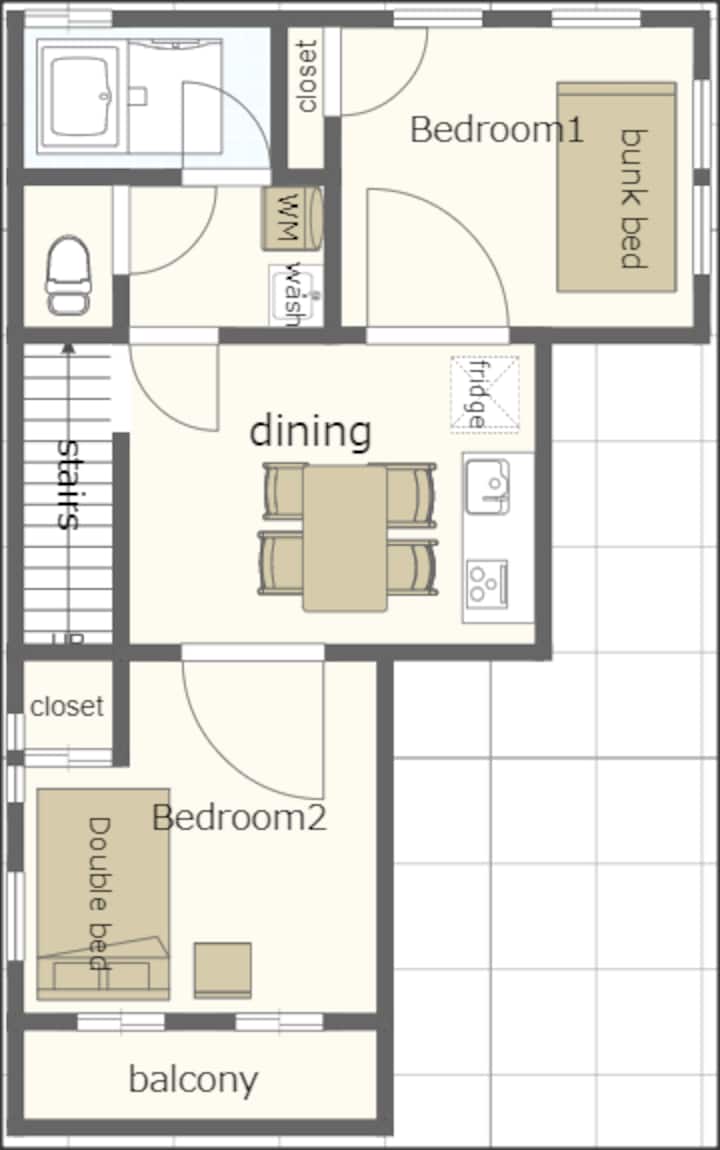 2LDK/Eneo tulivu/FreeParking/WIFI/FujimidaiSta dakika 7
