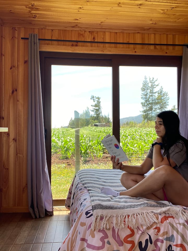 Jina langu ni Marta, mimi ni mwalimu wa mazoezi, pamoja na mume wangu sisi ni wazimu wawili wenye jasura na hii ndiyo sababu tunajenga na kupamba nyumba hii ya mbao, tukifikiria kuhusu kile tunachotafuta tunapotaka kuondoka jijini. Katika mradi huu tumeweka upendo wetu wote, ambao natumaini unahisi unapotembelea eneo hilo. Tunapatikana katika mazingira ya vijijini, tumezungukwa na mazingira ya asili na wanyama. Tuko umbali wa mita 15 kutoka Curanipe kwa gari