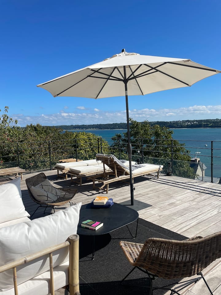 Vila ya mbunifu, kusini inayoangalia mwonekano wa bahari