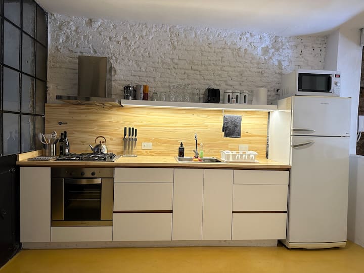 Sehemu ya ubunifu iliyokarabatiwa ya ghorofa ya chini iliyo na baraza