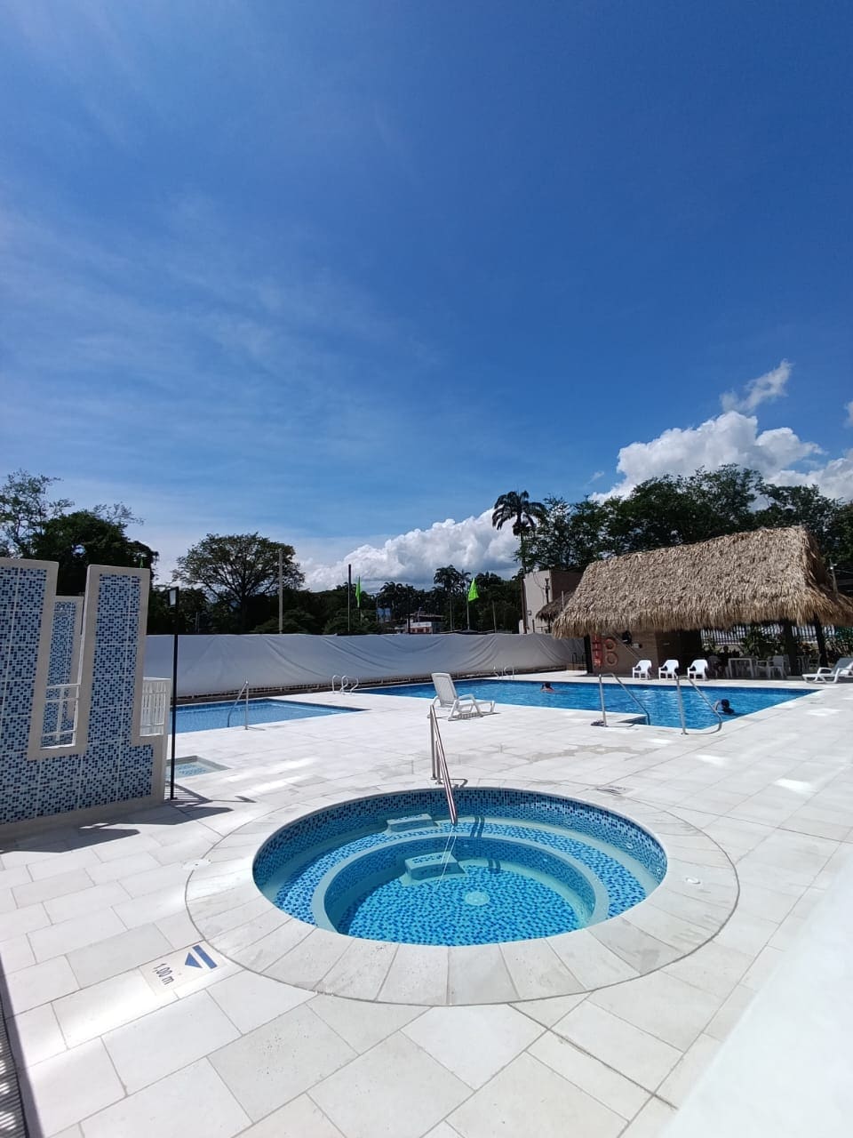 Hola 👋🏾 😊 A sólo 2 horas de Bogotá y a 5 cuadras del parque principal de Villeta ☀️ Apartamento nuevo 💎 naturalmente iluminado para disfrutar un espacio fresco de relajación y tranquilidad 🍃 Capacidad 8 huespedes, 3 habitaciones con vista a la piscina, 2 piso, 2 ascensores, sofa cama, 2 baños sala comedor y cocina integral, TV con Netflix Disney Prime, ventiladores, wifi, calentador de agua. Piscinas, jaquzzi, áreas social para compartir y caminar, juegos infantiles y parqueadero privado.