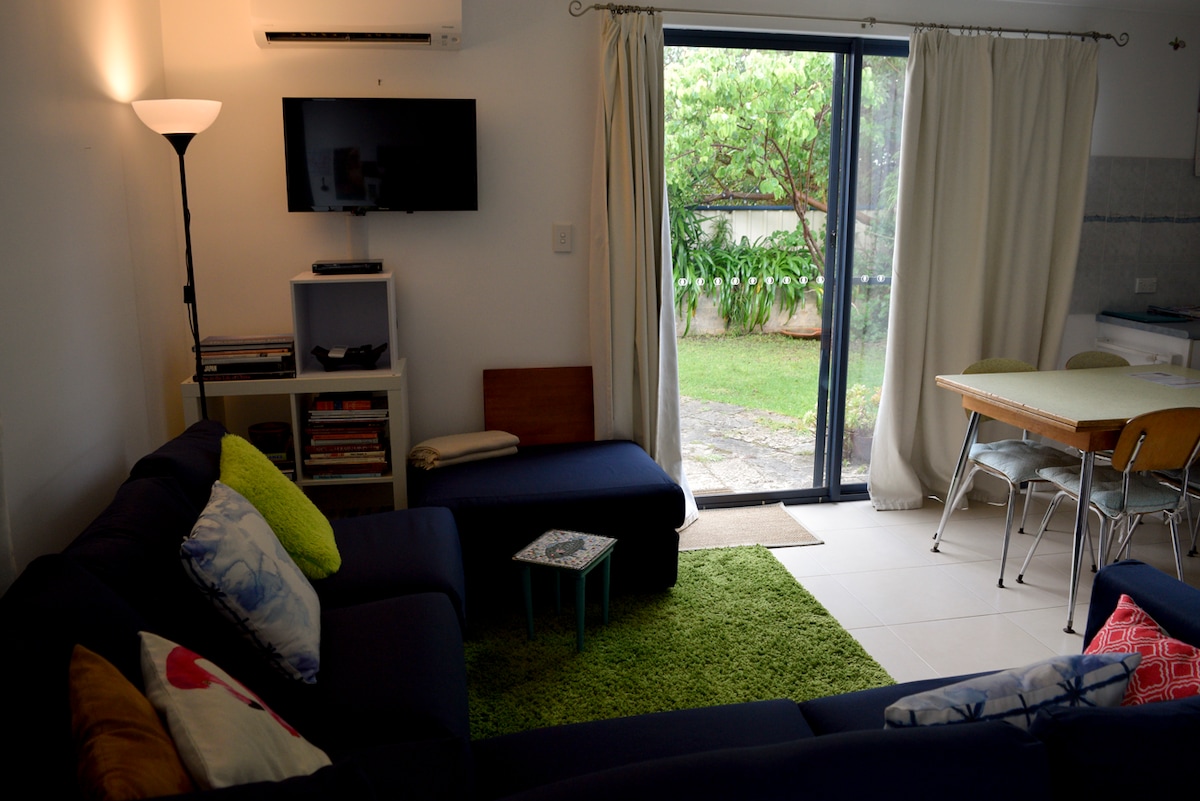 "Kona yetu ya starehe" (ghorofa ya nyanya) iko nyuma ya nyumba yetu, mjini-katika umbali rahisi wa kutembea kwenda katikati ya jiji na foreshore. Ina kitanda cha ukubwa wa malkia, chumba cha kupikia kwa ajili ya mapishi ya msingi na bafu la kujitegemea. Studio ina mlango wake tofauti, ingawa ua wa nyuma unashirikiwa na nyumba kuu.