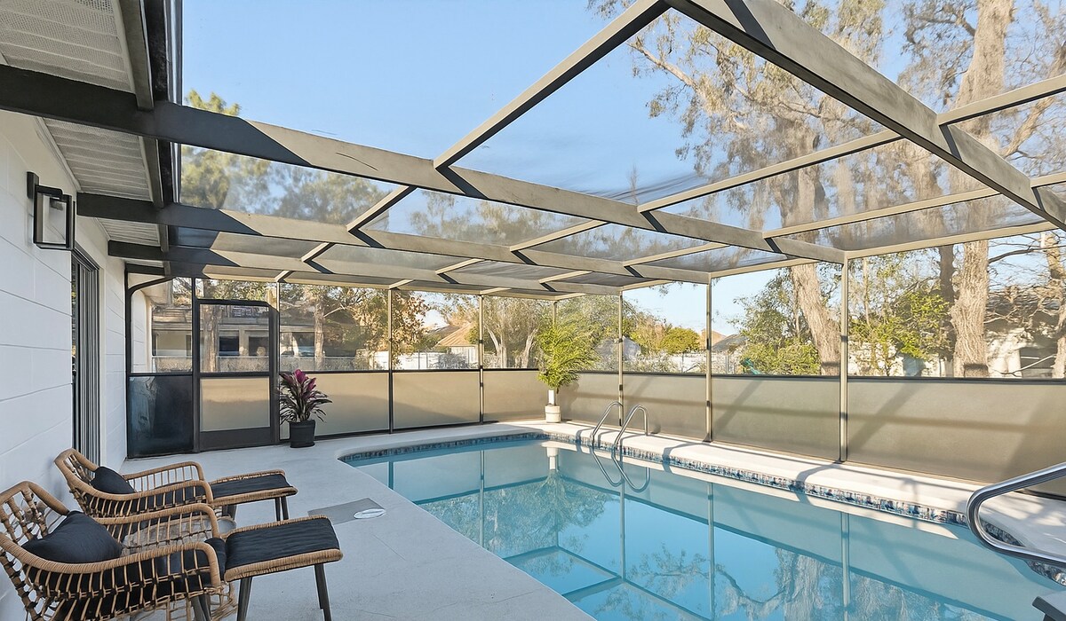 Iko katika Spring Hill, Florida. Nyumba hii ya bwawa la 3BR/2BA inalala vizuri 10 na koti za ziada na kochi kubwa la sehemu. Kujivunia mandhari ya nyumba ya mbao yenye giza, eneo la kuishi la dhana ya wazi, jiko lenye vifaa kamili na baraza iliyofunikwa hutoa nafasi nzuri ya kupumzika. Sehemu ya ofisi iliyo na printa isiyo na waya inakidhi mahitaji yako ya kazi. Iko ndani ya gari la saa 2 kutoka Clearwater Beach na Disney World, na karibu na Weeki Wachee Springs State Park na Sun West Park Beach.