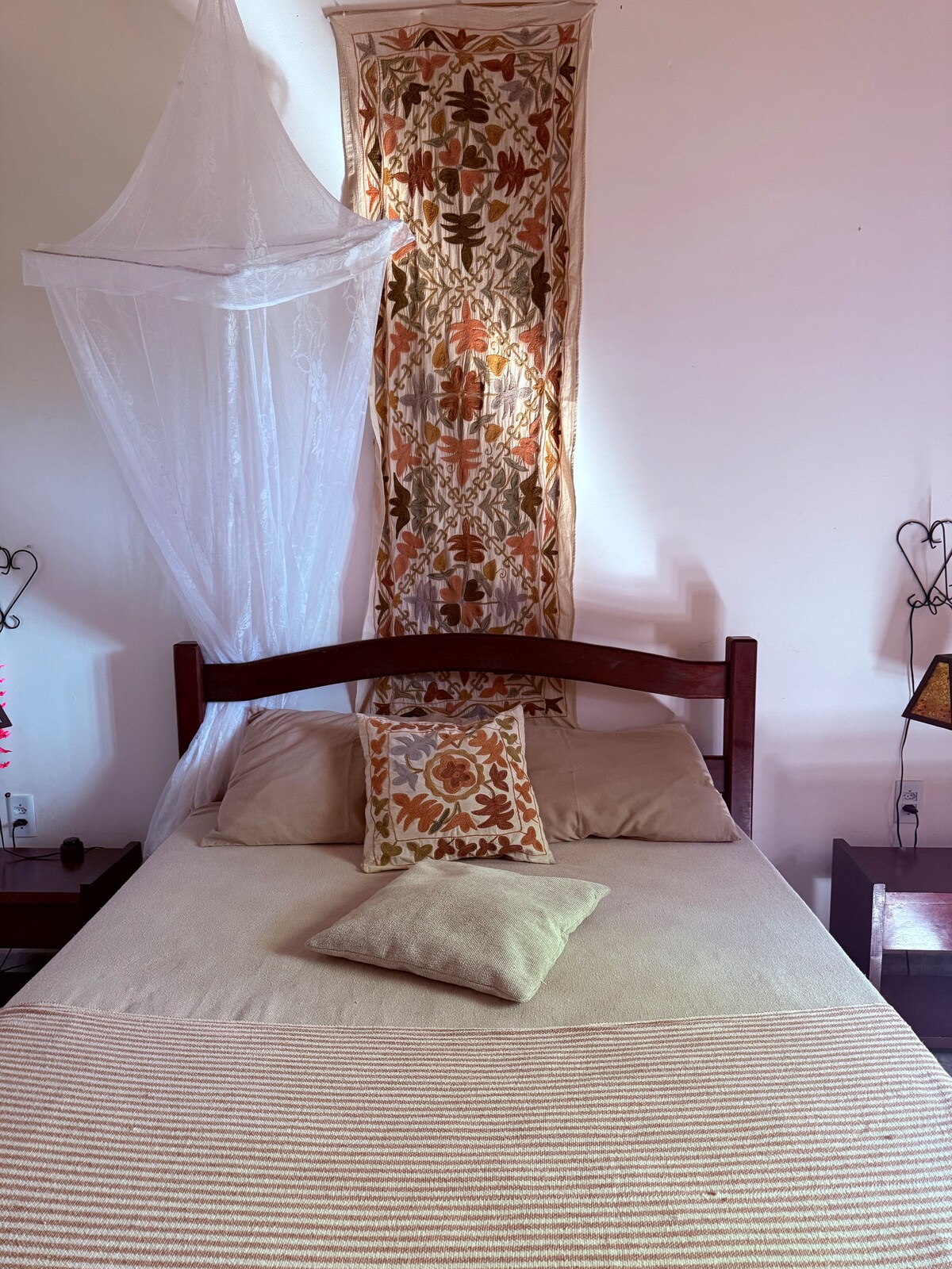 Nyumba ya Mallorca ilihamasishwa na kisiwa cha Mallorca, Uhispania, ambapo mwenyeji aliishi kwa miaka mingi ya maisha yake. Kubali urahisi na uchangamfu wa rangi na mapambo ya Mediterania katika paradisiaca Praia da Pipa. Casa Mallorquina iko ndani ya vila katika eneo tulivu na la kijani kibichi sana. Ni kawaida kupokea ziara nzuri ya marmosets wakati wa alasiri. Ni mita 400 kutoka duka la mboga, duka la dawa na kituo cha kusimama kwa gari, kilomita 1.3 kutoka uwanjani na kilomita 1.4 kutoka ufukweni. Nitafurahi kuzipokea. ❤️