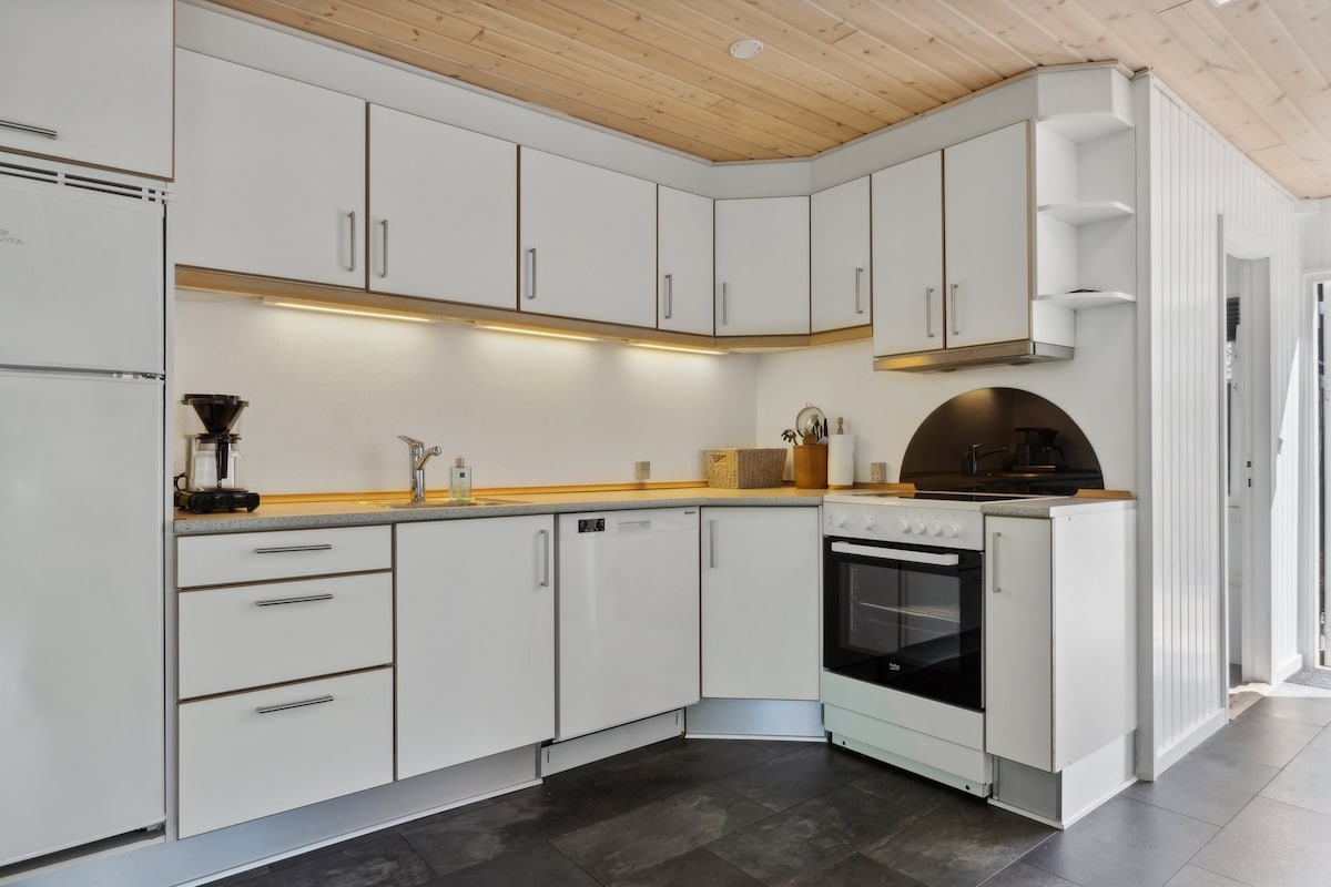 Nyumba ndogo nzuri zaidi ya likizo kwa ajili yako na familia yako au labda marafiki kadhaa wazuri. Ni rahisi, Nordic na inapendeza sana - hasa, ikiwa unapunguza jiko. Iko karibu na bahari, mikahawa ya mji kama Klitmøller Røgeri, Håndpluk, Le Garage na Kesses Hus na kitovu cha kuteleza mawimbini. Iko katika eneo la likizo, kwa hivyo kuna uwezekano mkubwa kwamba utakuwa na majirani wachache karibu - lakini usijali, ardhi ni kubwa, kwa hivyo utakuwa na nafasi ya kutosha ya kurudi na kufurahia amani na utulivu.