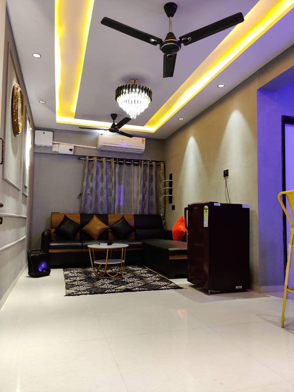 Studio hii imefurika na mwanga wa asili na upepo wa baridi. Jikoni ina vifaa vya kuingiza na vyombo muhimu. Sehemu nzuri ya kulala hufanya iwe nzuri kwa wasafiri wa kujitegemea au wanandoa. Iko karibu kabisa na kitovu cha viwanda cha Daman, hutumika kama msingi bora wa nyumba kwa ajili ya likizo yako au ziara ya kitaalamu. Vistawishi vya ziada ni pamoja na kitanda cha sofa, AC iliyogawanyika, mikrowevu, Smart TV, taa, feni na geyser. Vifaa vyote vinanunuliwa hivi karibuni. Weka salama kwa ukaaji wako wa kupendeza sasa!